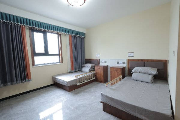 设施特色:生活用房90间,目前共设有床位180张,绿化、健身、休闲面积8200余平方米。房间内设有独立卫生间可供洗浴,配备电视、空调、床头柜、衣帽柜及紧急呼救系统、公共上网区间等;娱乐设施包含有厅内乒乓球室、台球室、棋牌室、阅读区、老年人室内外活动区域(可进行各项文娱活动);康复设施包含有康复训练用阶梯、平行杆、上线肢康复训练车、辅助步行训练器、站立架、重锤式手指肌训练桌、可调式沙磨板、滚筒、PT床、体操棒与抛接球、OT综合训练工作台、简易上肢功能评价器、背力计、角度尺、握力计、红外线治疗仪、电脑中配治疗仪、磁振热治疗仪、颈腰椎治疗牵引床等康复理疗器械。可为入住老人制定全方位专业的康复理疗方案并提供康复训练指导;设有餐厅,针对老人身体情况进行送餐到屋服务;安全保障设备有消防设施、监控设备、无障碍卫生间、安全扶手等,适老化设施完备。