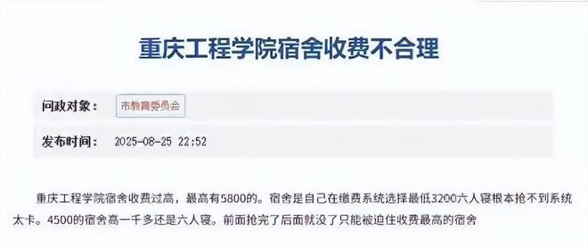 那些没抢到的学生,只能被迫选择更贵的四人间5200元或者三人间5800元,一年得多掏两千多块钱,很多学生和家长都觉得被学校“套路”了。