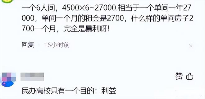 但学校通常又不允许大一新生在外租房,所以学生没什么选择余地。这件事闹大后,很多学生已经向当地主管部门投诉了。
